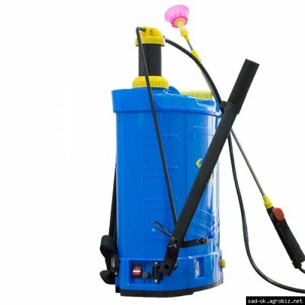 первая гибридная модель опрыскивателя, эксклюзивная разработка на рынке Украины, в ней есть и электрический насос, и ручная помпа для создания давления в баке.